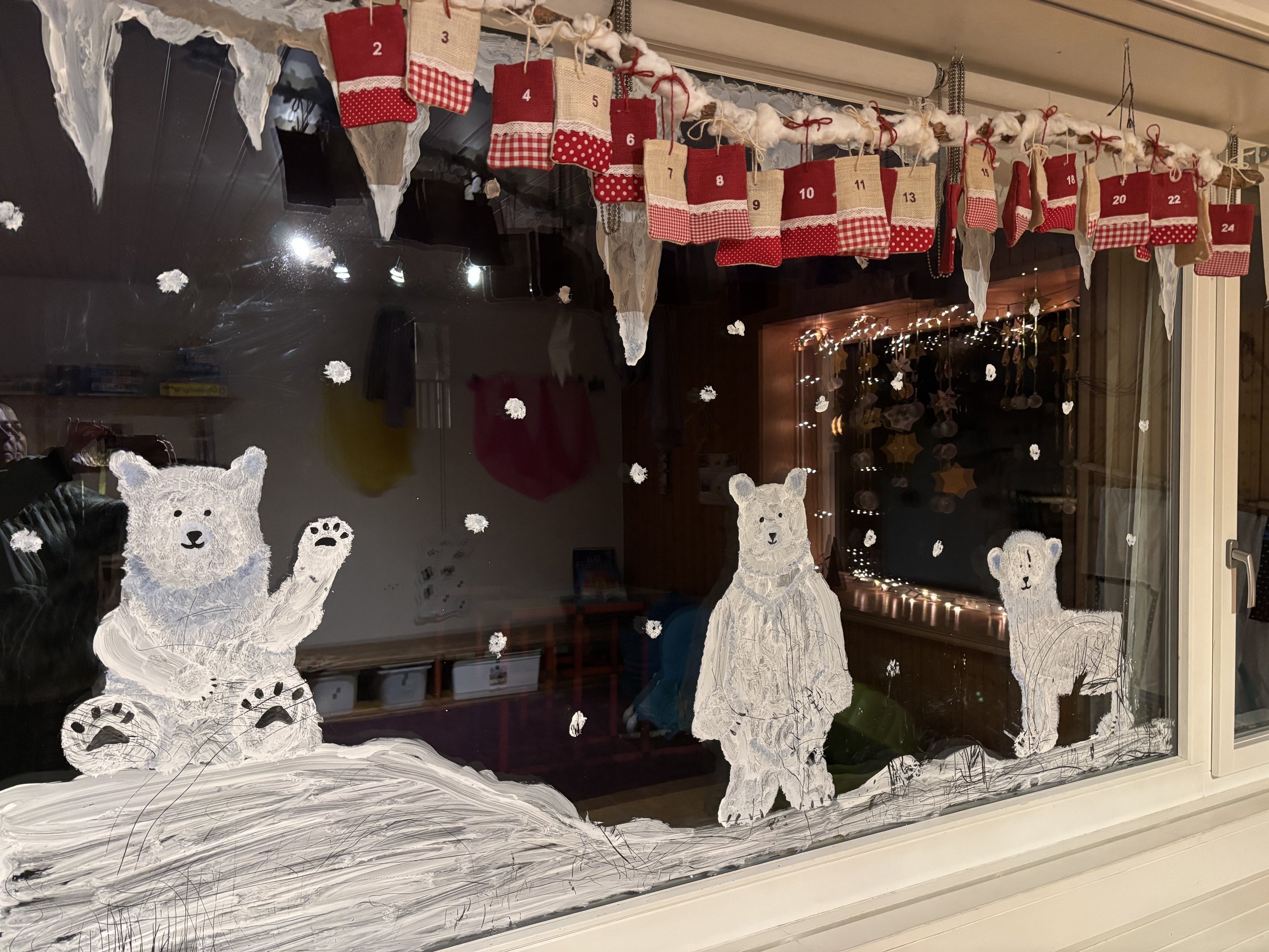 In der KiTa Nanuq ist wieder eine wunderbare Adventsstimmung eingezogen. Mit Lichterketten, einem Adventskranz und liebevoll gestalteten Dekorationen wurde es gemütlich und weihnachtlich. Ein besonderes Highlight in dieser Zeit sind die Chlouse-Chiinder. Jedes Kind darf während der Adventswochen eine persönliche Chlouse- Aktivität erleben. Das Nanuq- Team überlegt sich für jedes Kind etwas Individuelles, sei es Guetzli backen, Weihnachtslieder hören und dazu eine heisse Schoggi geniessen, festliche Bastelarbeiten gestalten oder einen kleinen Ausflug mit dem Poschi unternehmen.